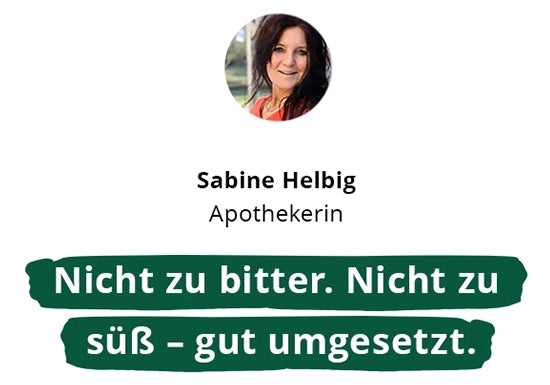 "Ich liebe die Bitterkraft!Original Säfte. Sie stehen immer auf meinen Nachttischen. Mit einem Spritzer frischer Zitrone tun Sie mir unwahrscheinlich gut. Nicht zu bitter und auch nicht zu süß. Die neue Variante Bitterstoffe aufzunehmen finde ich sehr gut umgesetzt. Genau richtig."