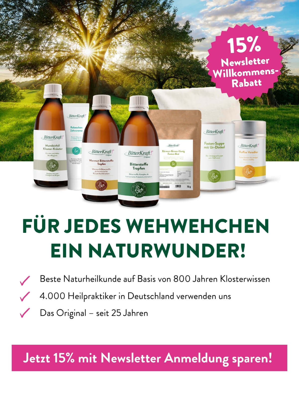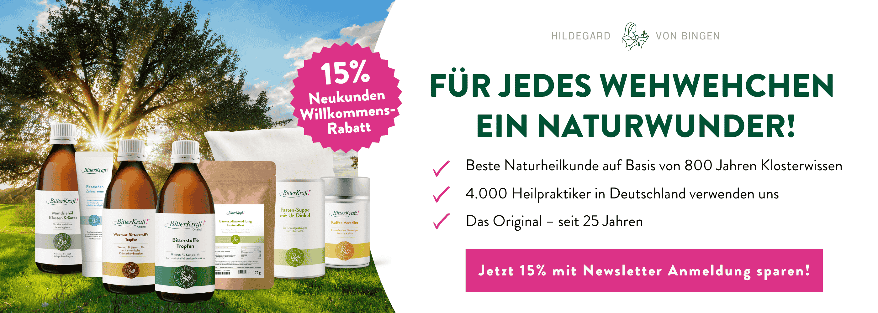 Wir von Bitterkraft möchten helfen, dieses alte Wissen der Hildegard von Bingen zu erhalten und ihre Erkenntnisse und Rezepte als Hilfe zur Selbsthilfe weiterzugeben.